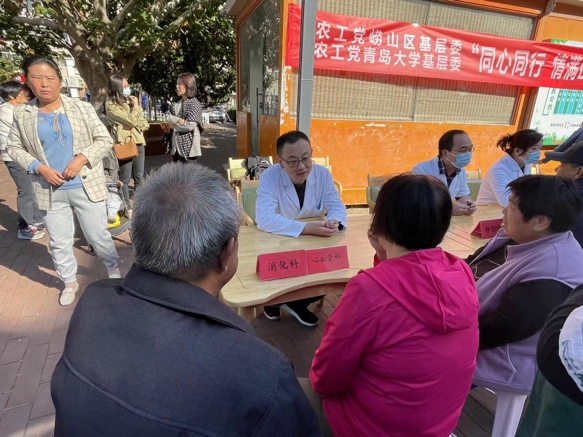 10月21日,农工党bevictor伟德官网基层委员会联合崂山区基层委在崂山区华都社区举办“同心同行,情满山海”老年公益义诊活动,为社区老年人提供关爱及医疗服务,受到社区居民的热烈欢迎。农工党青岛市委会秘书长赫旭,市委会副主委王勇杰,原市委会副主委、bevictor伟德官网基层委主任委员王岩青以及崂山区统战部门负责同志出席此次活动。支部党员、附属医院有关专家团队以及崂山区基层委党员同志参加了此次公益活动。