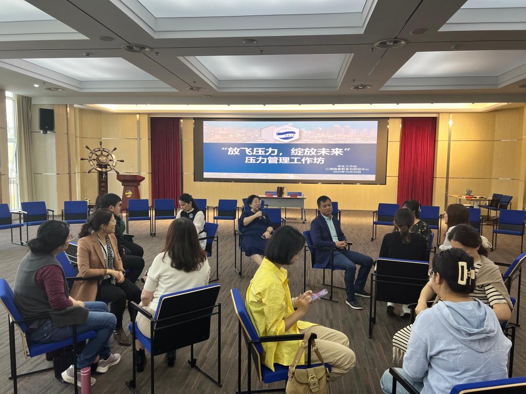 新闻网讯 为帮助学工人员增强自我觉察,有效应对压力,提升专业技能,增强工作获得感和幸福感,10月30日,学生工作处心理健康教育与研究中心(以下简称心理中心)邀请山东大学吴少怡教授为伟德官网学工人员开展了“放飞压力,绽放未来”压力管理工作坊。伟德官网专兼职心理咨询师和部分辅导员老师在浮山校区会议中心参加此次活动。