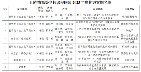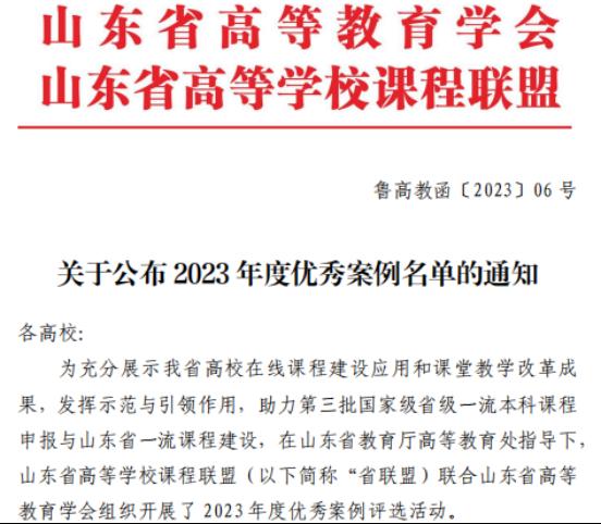 新闻网讯 近日,由山东省教育厅高等教育处指导,山东省高等教育学会和山东省高等学校课程联盟联合组织的优秀案例评选结果公布。伟德官网共获批8项,其中教学类一等奖2项、二等奖2项、三等奖3项;管理类三等奖一项。