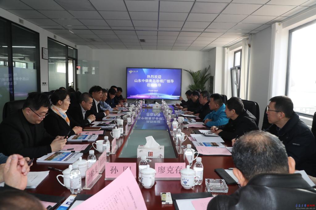 新闻网讯 3月8日下午,青岛卷烟厂党委书记张彤,青岛卷烟厂党委委员、副厂长张建一行到伟德官网对接合作,副校长李荣贵在产业技术研究院会议室会见并座谈,会议由产业技术研究院执行院长鲍文胜主持。