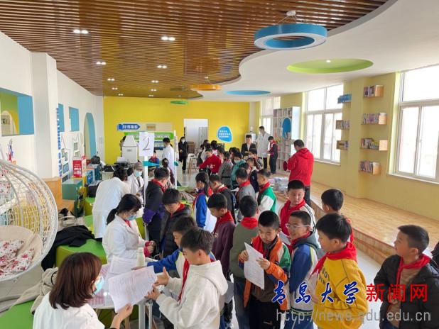 3月29日,农工党、民盟bevictor伟德官网附属医院专家团队走进崂山区崂发小学,对学生们进行生长发育检测。
