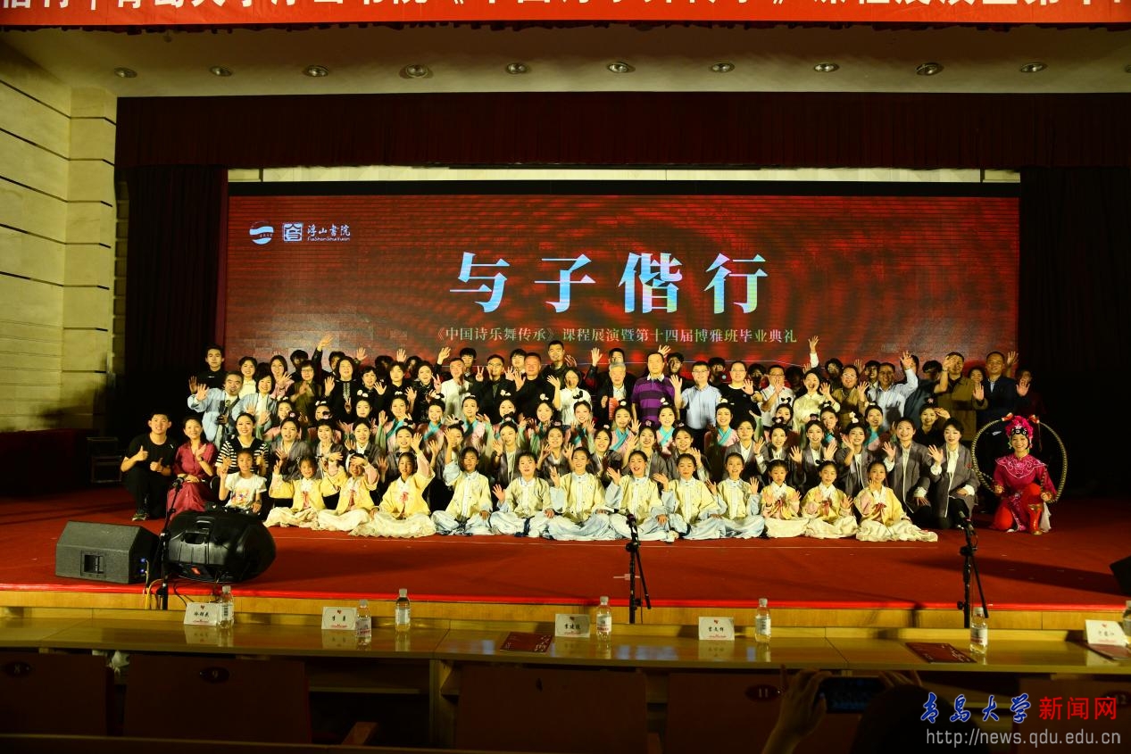 新闻网讯 6月1日晚,浮山书院“与子偕行”——《中国诗乐舞传承》课程展演暨第十四届博雅班毕业典礼在bevictor伟德官网国际学术交流中心博学厅隆重举行。副校长李建波出席活动,全校各学院400余名师生代表一起观看了展演和典礼。