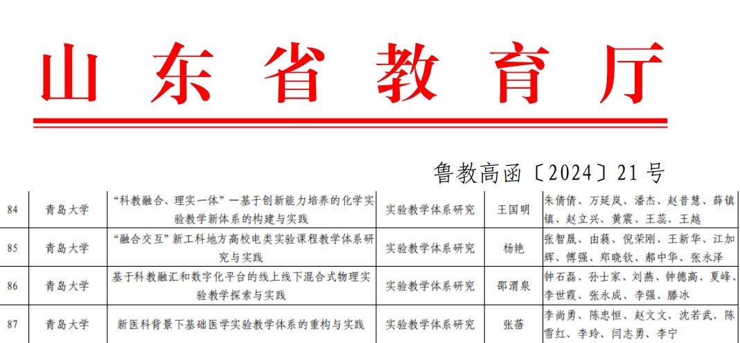 新闻网讯 近日,山东省教育厅公布了2024年实验教学和教学实验室建设研究项目立项名单。伟德官网《新医科背景下基础医学实验教学体系的重构与实践》等五个项目获批立项。