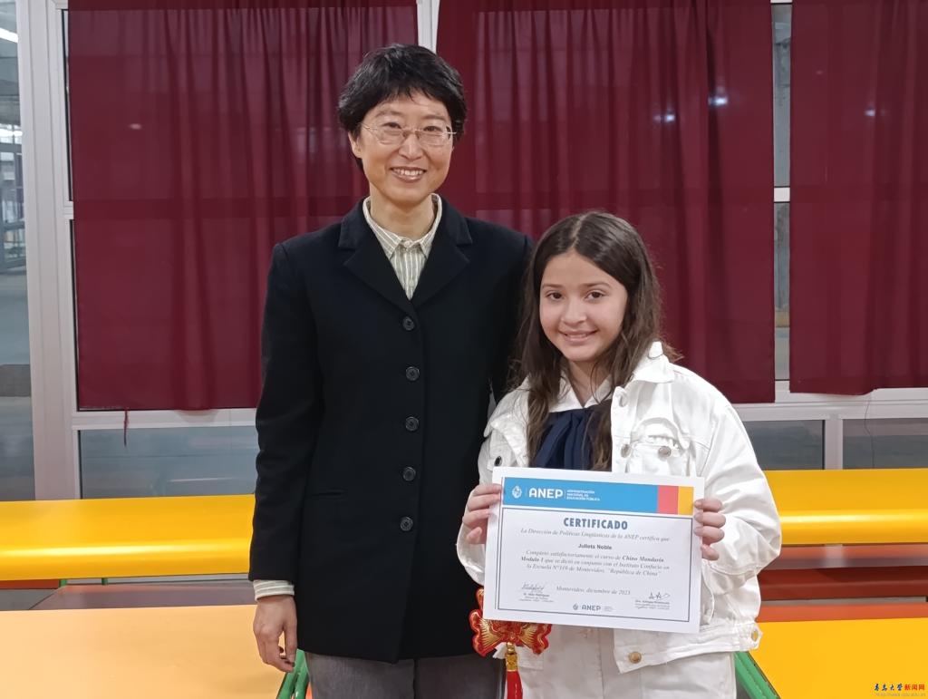 乌拉圭共和国大学孔子学院为中国援建的共和国小学举行中文结课颁奖仪式