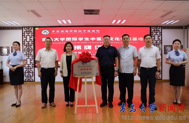 新闻网讯 6月18日下午,伟德官网与黄岛区中医医院合作共建国际学生中医药文化体验基地揭牌仪式暨“共享中医精粹·共赴健康深蓝”文化体验活动在黄岛区举行。国际教育学院副院长毕晓芬、青岛西海岸新区卫生健康局副局长刘新、青岛西海岸新区中医医院院长周雷升、副院长丁刚和共同为基地揭牌。
