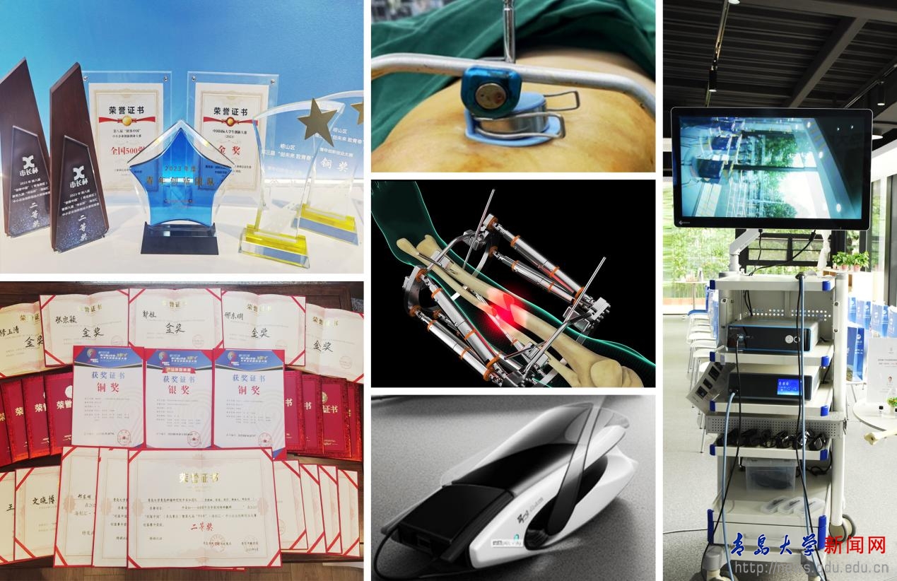 目前肿瘤院已成功研发多项创新性技术成果,涵盖多功能抗体新药、双功能分子新药、钉道损伤特种辅料、骨折复位固定一体化机器人、骨折牵引机器人、肿瘤标志物新检测技术、微生物快速采样定量一体化检测等新技术,相关成果曾被《人民日报》等媒体报道。2023年,肿瘤院团队4个原创项目参加“创客中国”(青岛赛区)创新创业大赛总决赛,其中2项分获全国 500强,2项获得青岛“市长杯”决赛第2、3名;另外还获得崂山区青年创新创业大赛金奖、铜奖及中国国际大学生创新大赛金奖(国际赛道)等。同时肿瘤院积极服务于青岛支柱产业创新提能,为上市公司海尔生物、盈康生命、威奥股份等20余家单位提供联合研发、人才培养等多元服务。