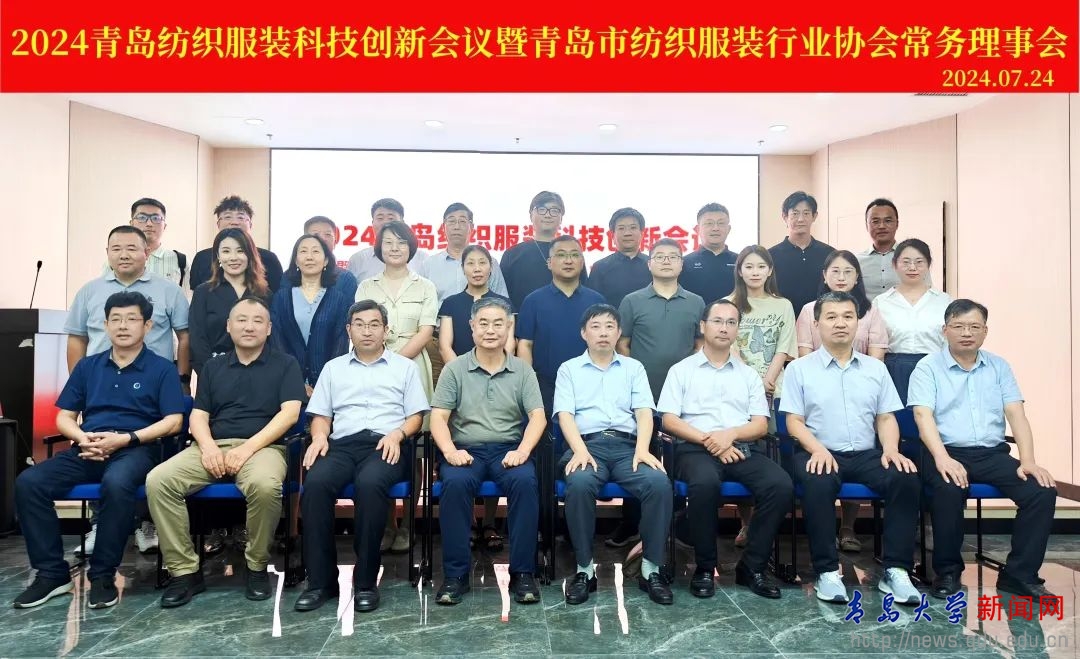新闻网讯 7月24日,2024青岛纺织服装科技创新会议暨青岛市纺织服装行业协会常务理事会在伟德官网召开,本次会议由bevictor伟德官网、青岛市纺织服装行业协会主办,伟德官网纺织服装学院、青岛依美时尚国际贸易有限公司承办,青岛市工业和信息化局消费品产业处三级调研员管锋,国家先进印染技术创新中心高级工程师柳永杰,青岛市人工智能产业协会执行会长姜代楠等30余位嘉宾及常务理事代表出席会议。本次会议旨在结合青岛纺织服装产业基础与特色进一步增强产业发展动力和韧性,以双循环为指引,研究科技新质生产力、文化新质生产力和绿色新质生产力发展方向,推动行业产业发展,提高企业科技创新力,这也是青岛纺织服装协会首次举办的科技创新主题会议。