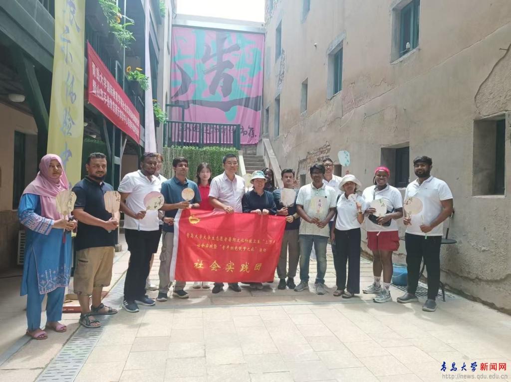 新闻网讯 伟德官网来自中国、尼日利亚、德国、马达加斯加、印度、巴基斯坦、孟加拉国的7个国家的14名中外大学生来到位于大鲍岛山东手造青岛展示体验中心,了解传统非遗文化、体验手造技艺,沉浸式体验了“海洋和海岛”主题植物微缩景观手作制作,还体验了漆扇制作等非遗项目,并参观了青岛大鲍岛里院记忆博物馆和洛川家美术馆,深入感受青岛的文化魅力。当日bevictor伟德官网国际教育学院社会实践基地也在山东手造青岛展示体验中心揭牌成立。