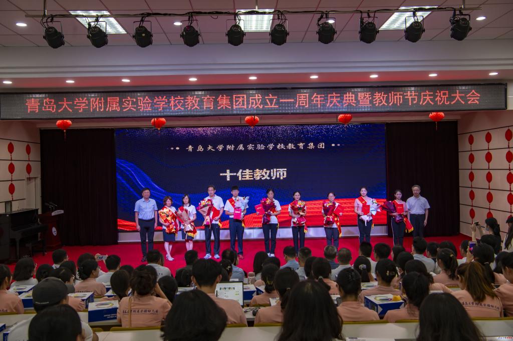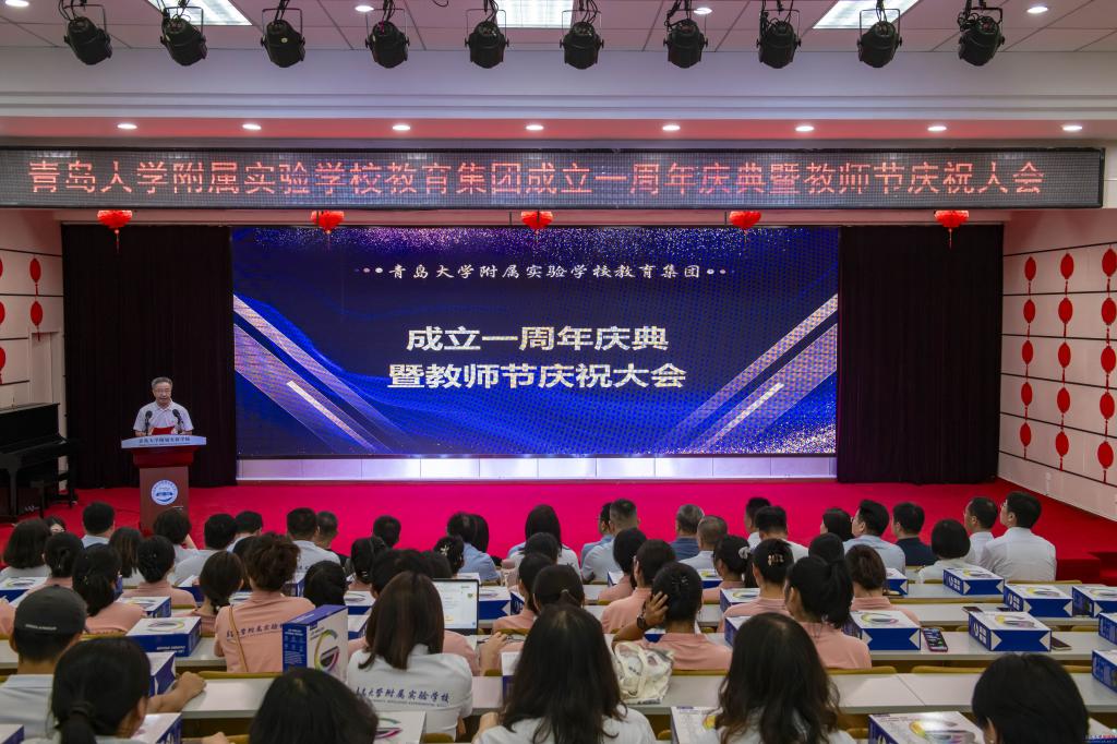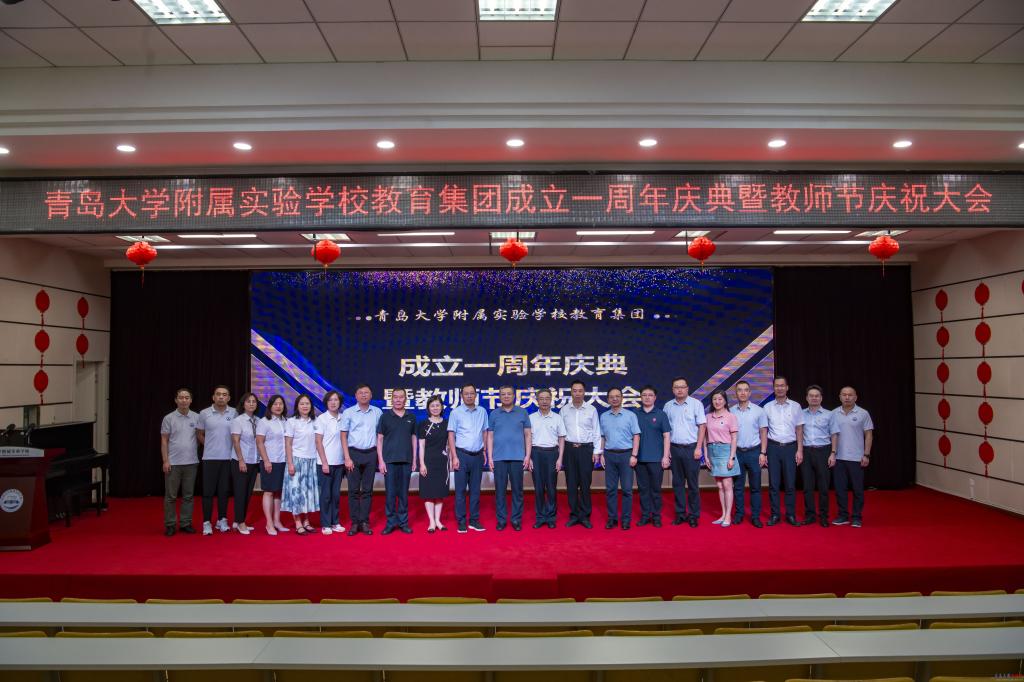 新闻网讯 9月14日下午,bevictor伟德官网附属实验学校教育集团成立一周年暨教师节庆祝活动在bevictor伟德官网附属实验学校初中部举行。校党委常委、副校长刘恩贤,崂山区教育和体育局党组成员、副局长柳宁,山东青大教育集团理事长、bevictor伟德官网教育集团总经理张贞齐,崂山区金家岭街道朱家洼社区党委书记朱光恩,金家岭社区党委书记王文友等领导出席活动。bevictor伟德官网附属实验学校教育集团总校长马勇军及各学段执行校长、书记和教职工到场参加活动。