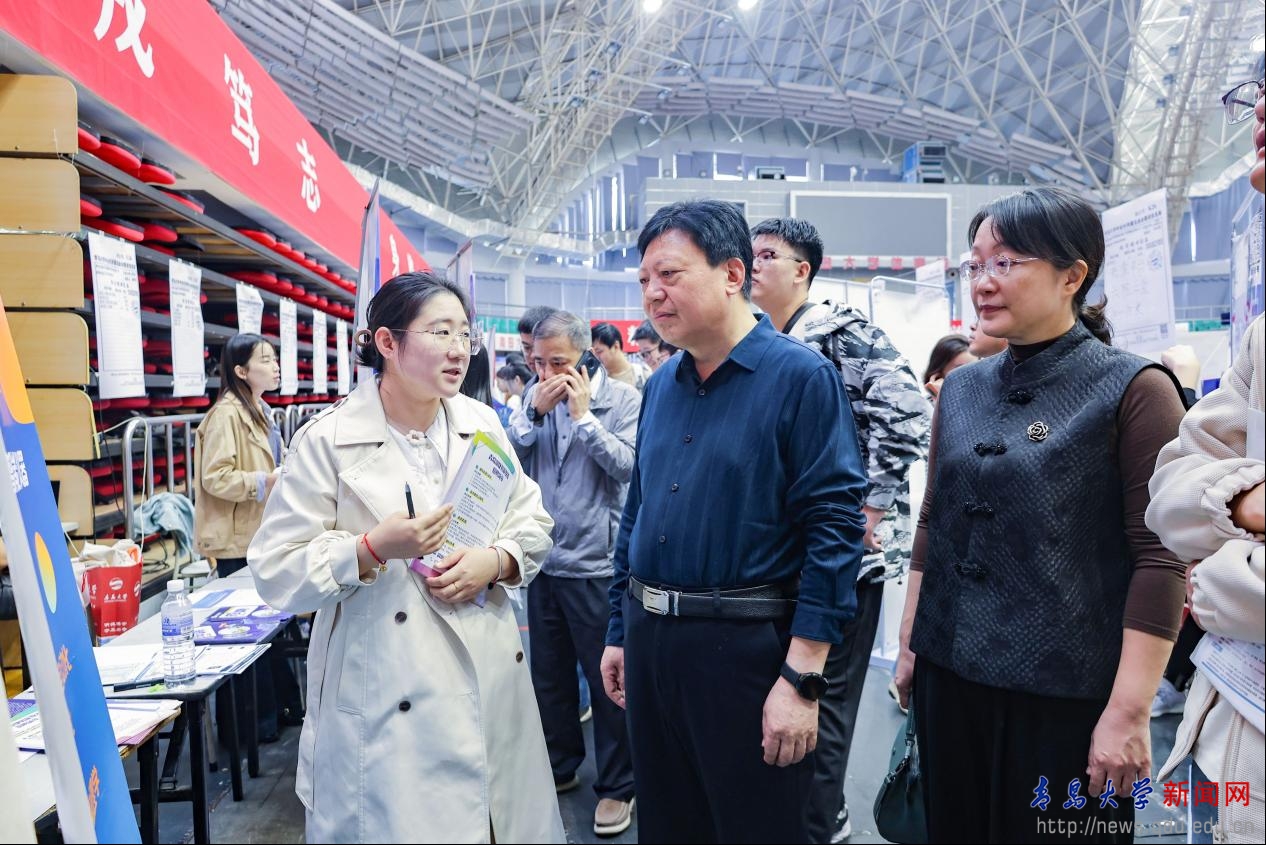 新闻网讯 10月13日,伟德官网2025届毕业生秋季大型供需见面双选会在青浮山校区体育馆顺利举办。此次双选会共吸引了近五百家用人单位入校招聘,提供就业岗位需求人数两万一千余个,五千余名毕业生到会应聘。校党委常委、副校长陈涛到现场了解企业岗位需求、学生应聘情况,与用人单位代表交流洽谈。