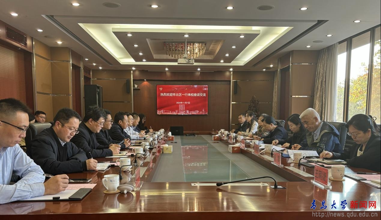 市北区教体局、科技局、文旅局、卫健局、融汇集团、环海湾集团等相关单位负责同志,学校科技处、合作发展处、科研成果转化中心、商学院、艺术学院、青岛医学院、教育集团相关负责人参加座谈。