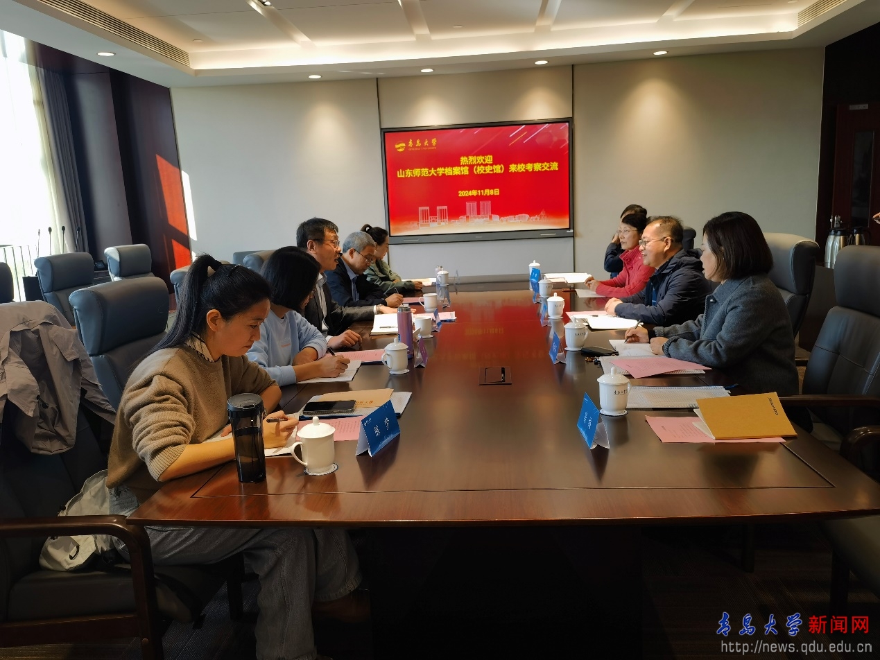 新闻网讯 11月8日上午,山东师范大学档案馆孟宪喆馆长一行5人来校调研交流。校档案馆馆长张博、副馆长毕晓芬及相关工作人员参加座谈。