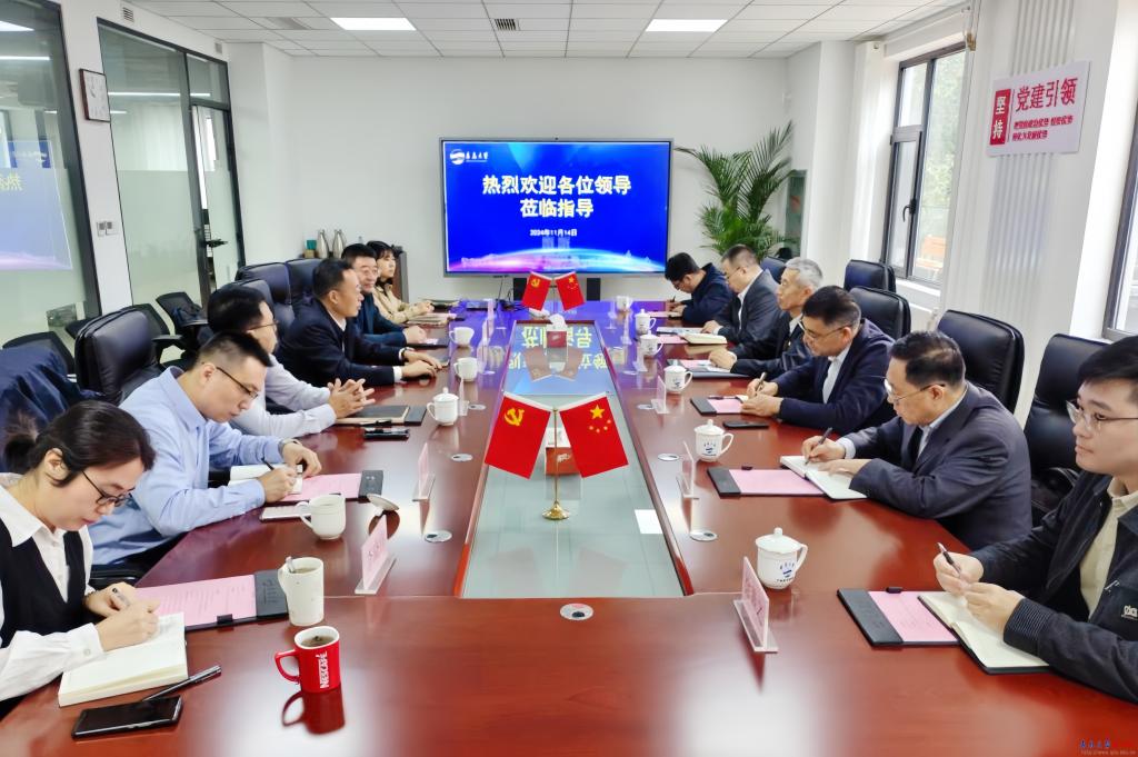 新闻网讯 11月14日上午,中国检验认证集团山东有限公司党委委员、副总经理倪新一行到产业技术研究院调研,校党委常委、副校长刘恩贤陪同参观展厅并主持座谈会,科研成果转化中心主任、产业技术研究院执行院长鲍文胜陪同活动。