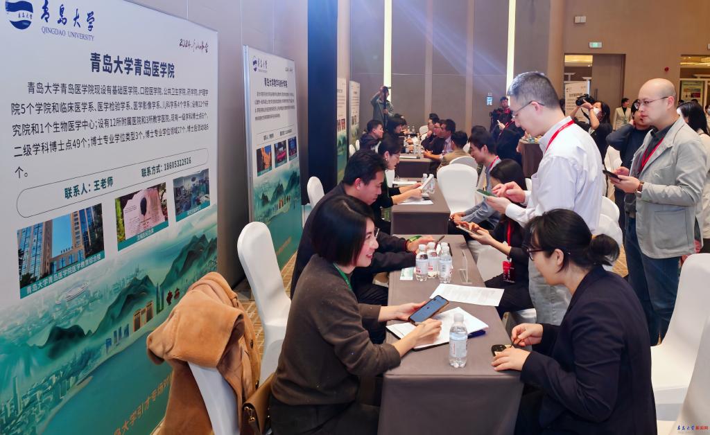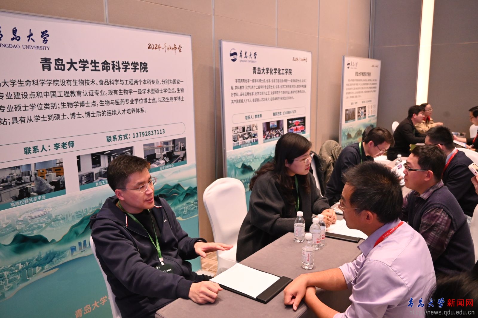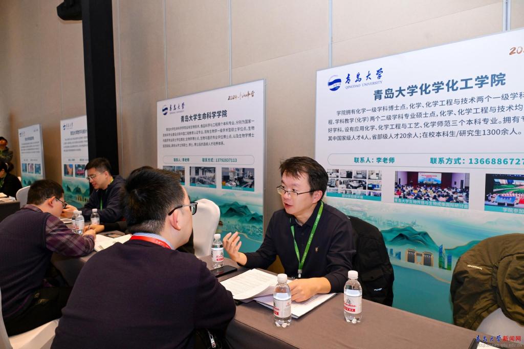 开幕式结束后,伟德官网青岛医学院、自动化学院、纺织服装学院等13个学院的代表通过专场对接交流会与100多名参会海内外优秀人才进行了现场交流对接。