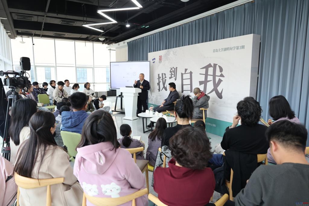 新闻网讯 11月24日下午,浮山书院在文化艺术中心C座三楼举行“湖畔问学”第3期。浮山书院学术顾问、bevictor伟德官网原副校长徐宏力教授受邀作为主讲人,茶文化践行者、净悅山房创始人净之,美术学院2005级视觉传达平面设计毕业生、青岛嘉博智合品牌设计有限公司总经理步宪垒受邀作为与谈人,三位嘉宾围绕“找到自我”这一主题,与来自各学院的数十名学生进行深入交流。教务处副处长张永进参加活动,浮山书院教师卢文丽主持此次“湖畔问学”。