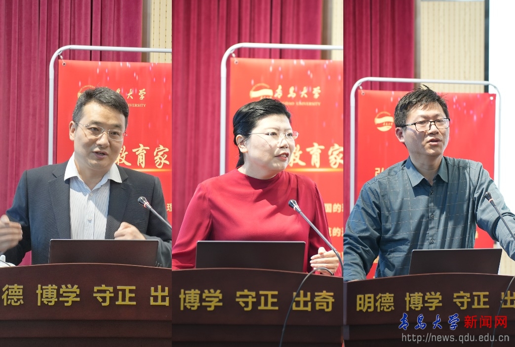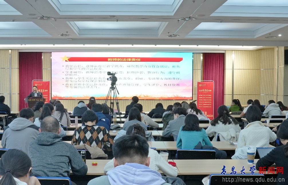 山东省师德宣讲库专家、法学院许庆永副教授做了高校教师法治教育专题报告,帮助教师明确法律责任,提升法治素养。两位优秀教师代表进行了教学与科研工作经验分享。国家级课程思政教学名师、文学与新闻传播学院马光亭教授,结合自身躬耕教坛25年的工作经历,分享了坚持以“立德树人”为主线,在从打好教学基础、到创新成长、最终到特色发展的教师成长“三个阶段”中的经验和感悟。国家级人才、物理科学学院院长李强教授,结合自身入职青大10年的成长与发展历程,分享了青年教师在科研方向确定、项目申报、研究生指导等方面的经验和体会。