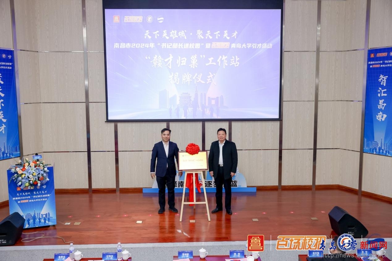 陈涛、贾彧超共同为“赣才归巢”人才工作站揭牌。