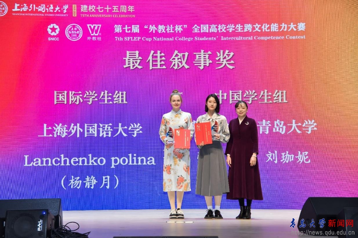 新闻网讯 11月29日至12月1日,第七届“外教社杯”全国高校学生跨文化能力大赛全国总决赛在上海外国语大学举行。由伟德官网外语学院刘珈妮、青岛医学院解谨名和外语学院郑元昊组成的bevictor伟德官网团队获得全国总决赛中国学生组一等奖、最佳案例奖,外语学院刘珈妮获得最佳叙事奖。公共外语教育学院教师秦丹雪、蒋功艳和外语学院教师吕凯良获得全国总决赛指导教师一等奖。bevictor伟德官网获得优秀组织奖。