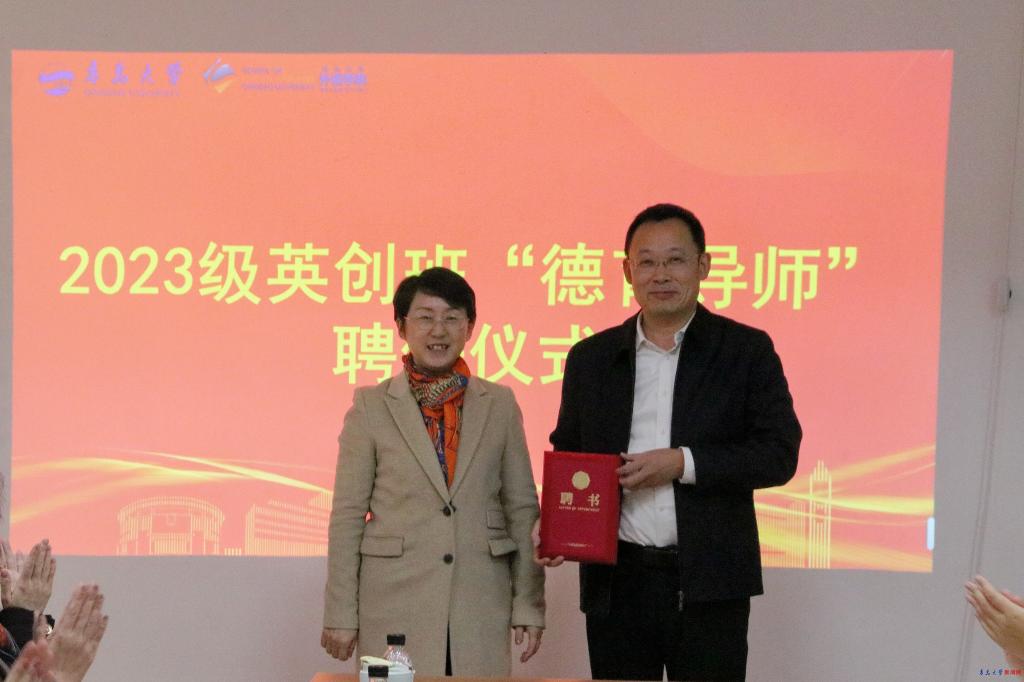 主题班会上,外语学院院长卞建华向刘恩贤颁发“德育导师”聘书。在“情系学生,感恩成长”师生互赠环节,刘恩贤为英创班赠送书籍《习近平与大学生朋友们》,并鼓励同学们多读,多实践。