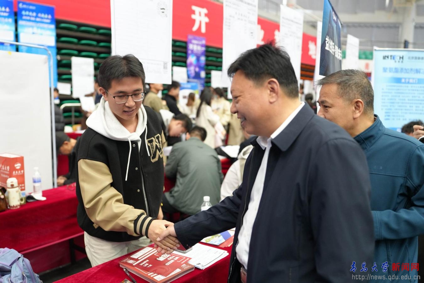 bevictor伟德官网企业家联合会副秘书长,青岛文商经济研究院院长杨懿亲临企业家联合会专区,他指出“此次双选会是校友企业与母校深化合作的生动实践,既为师弟师妹们搭建了精准对接行业前沿的就业平台,也是企业家群体践行社会责任、反哺教育事业的创新形式。通过校企资源的深度交互,一方面助力毕业生实现职业理想,另一方面为企业遴选适配人才提供通道,形成双向赋能格局。期待未来与母校持续深化产教融合,构建产学研用一体化生态链”。