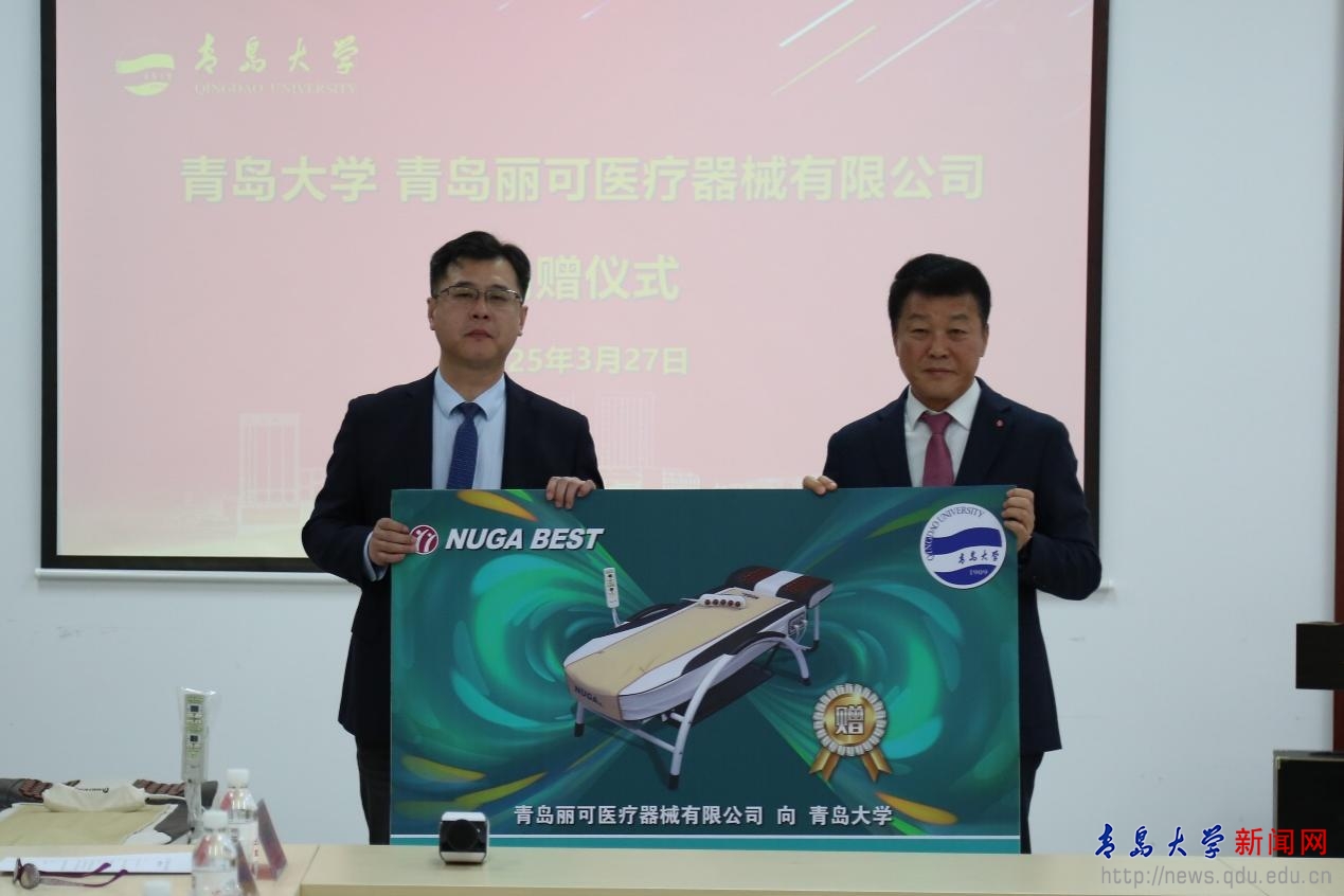 新闻网讯 3月27日上午,青岛丽可医疗器械有限公司向bevictor伟德官网捐赠10台“自动温热组合医疗器”,助力学校事业发展和老龄服务工作。捐赠仪式在浮山校区文化艺术综合楼老同志文化活动中心举行。校党委常委、副校长牛海涛,青岛丽可医疗器械有限公司代表崔熙准出席活动并致辞。捐赠仪式由离退休党委书记、处长宋佐东主持。