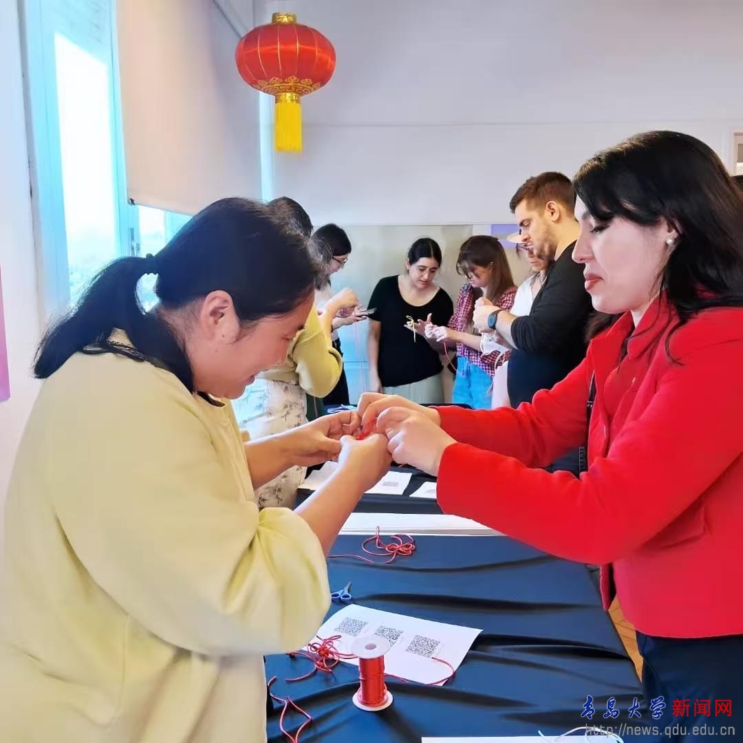 紧接着,活动进入到“中国水墨山水”绘画体验和“中国结”编结体验环节。两项活动同步进行,在孔院教师的细致指导下,参与者们分组体验中国传统艺术的魅力。大家在创作中体会到中国文化的精妙与意境,不时传出阵阵欢声笑语。