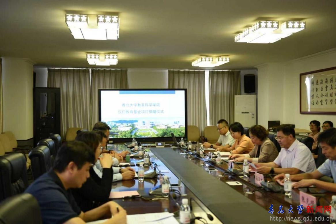 新闻网讯 10月11日下午,教育科学学院“汉印教育基金”项目捐赠仪式在德润楼301会议室举行。青岛汉印教育咨询有限公司总经理梅豹,校党委常委、副校长刘恩贤,合作发展处处长、教育发展基金会秘书长王海荣,教育科学学院院长孙百才出席仪式。仪式由教育科学学院党委书记刘清亮主持。