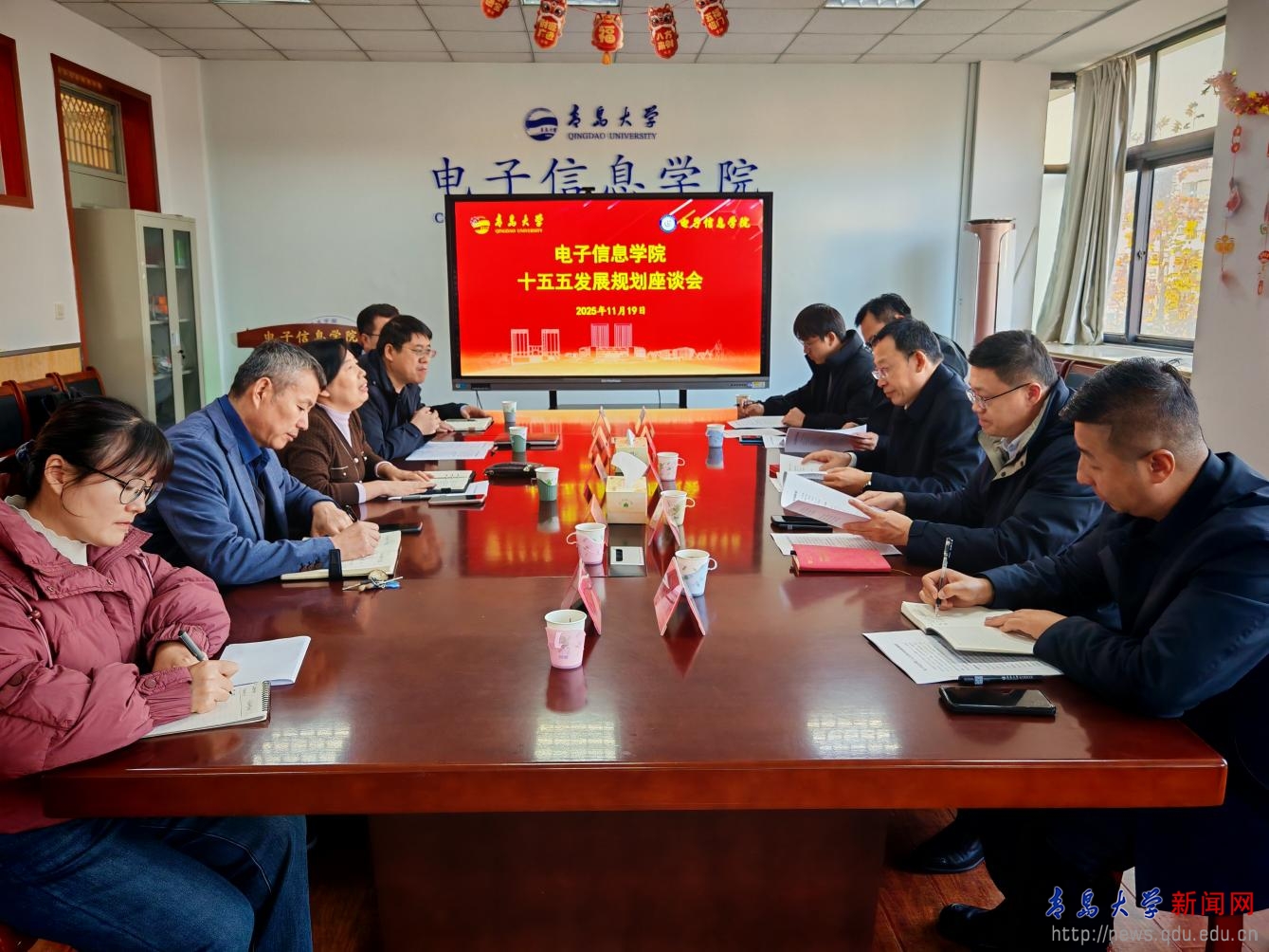 新闻网讯 11月19日下午,校党委常委、副校长刘恩贤到电子信息学院就“十五五”发展规划编制工作进行专题调研。发展规划处处长马林刚、副处长王绪金、鲁建平(挂职)陪同调研,电子信息学院党委书记孙丽娜、院长李山东参加座谈。