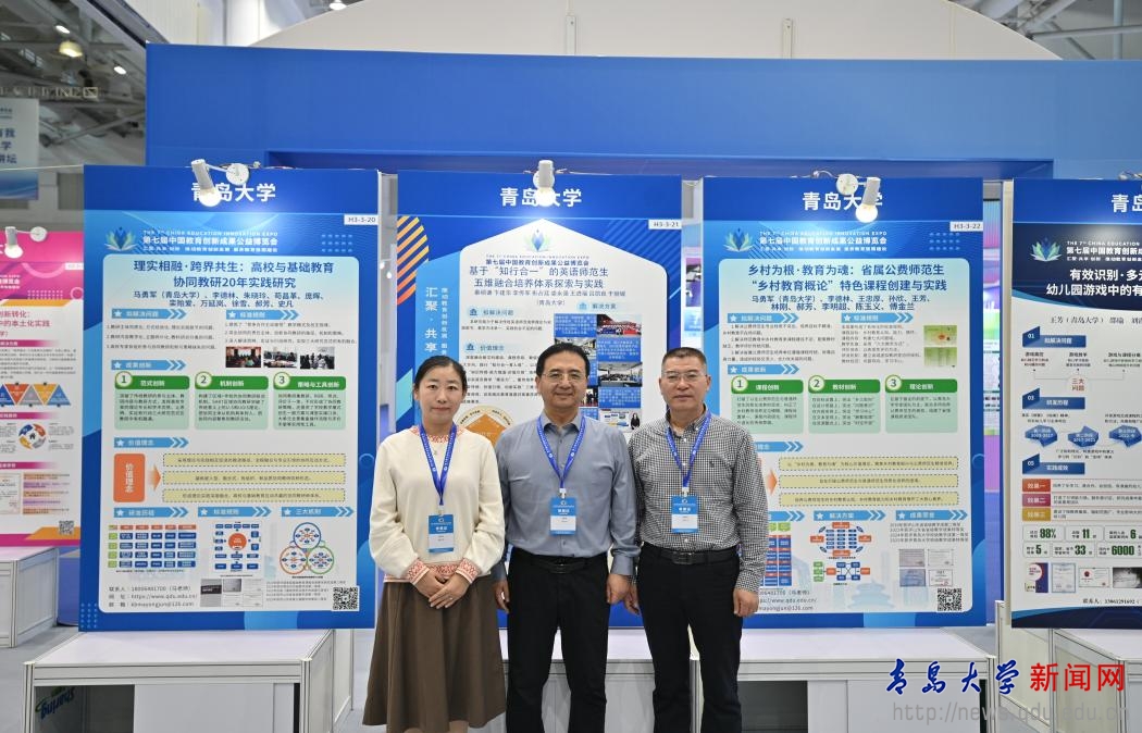 教育科学学院共有三项教育创新成果与会参展,分别是马勇军教授领衔主持的《理实相融·跨界共生:高校与基础教育协同教研20年实践》《乡村为根·乡教为魂:公费师范生“乡村教育概论”特色课程创建》和王芳教授领衔主持的《有效识别·多元支持·深入拓展——幼儿园游戏中的有意义学习研究与实践》。