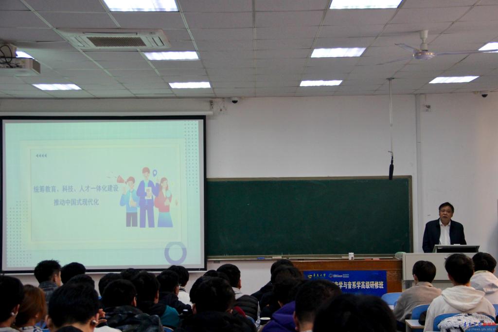 李荣贵系统阐释了党的二十届四中全会关于教育、科技、人才一体推进的战略部署,勉励同学们将学习宣传贯彻全会精神作为当前一项重要的政治任务。他围绕三个方面展开深入讲解,一是统筹教育、科技、人才一体化建设对推动中国式现代化的重要意义,强调教育是基础,科技是关键,人才是根本,只有三者发挥合力才能产生1+1+1>3的成效;二是新时代背景下推进教育、科技、人才协同发展的总体要求,指出应发挥三者的倍增效应;以强为基,深化科技体制改革;以新为标,深化人才发展体制机制改革;三是当前推动三者融合发展的实践路径与拓展方向,在统筹谋划上加强方位嵌入,汇聚推动合力;在资源配置上全要素融合,提升推动效率;在评估优化上要形成全过程覆盖。李荣贵结合自身工作实践,客观分析了当前高校在教育、科技、人才一体化推进过程中存在的短板与不足,并就未来发展方向提出了系统性的工作思路与展望。整场报告内容翔实、逻辑清晰,现场学生反响热烈。