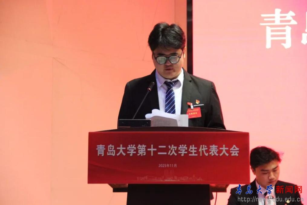 大会第一次全体会议上,校学生会执行主席田永润代表上一届学生会委员会作题为《青春勇担当 奋进新征程 为推进中国式现代化建设贡献青年力量》的工作报告。