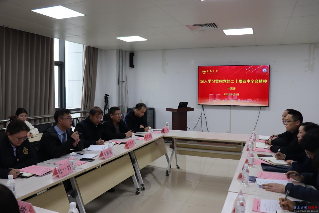 新闻网讯 12月2日下午,校党委常委、副校长牛海涛到基础医学院为师生代表宣讲党的二十届四中全会精神,并列席学院党委会、党政联席会。