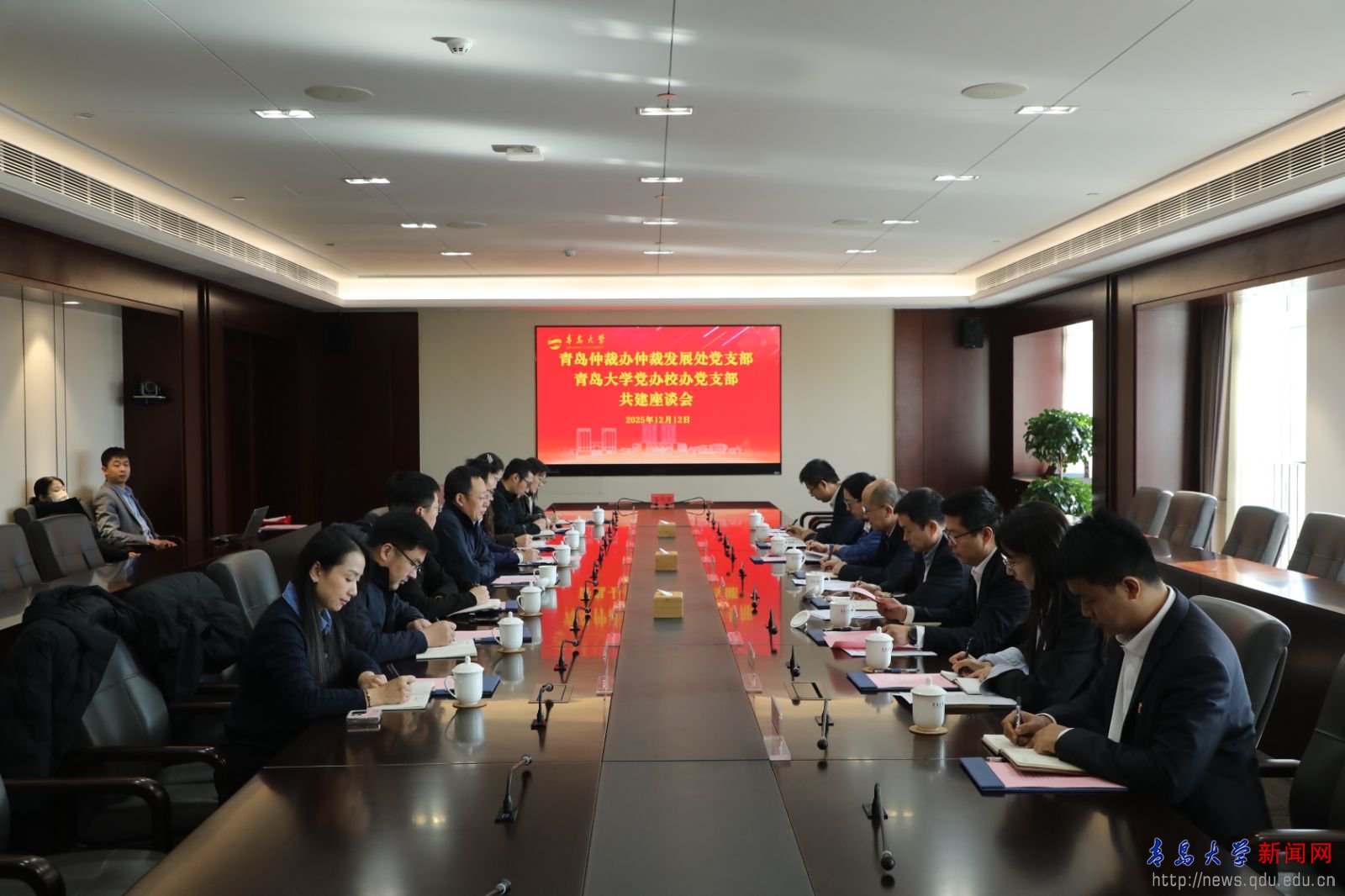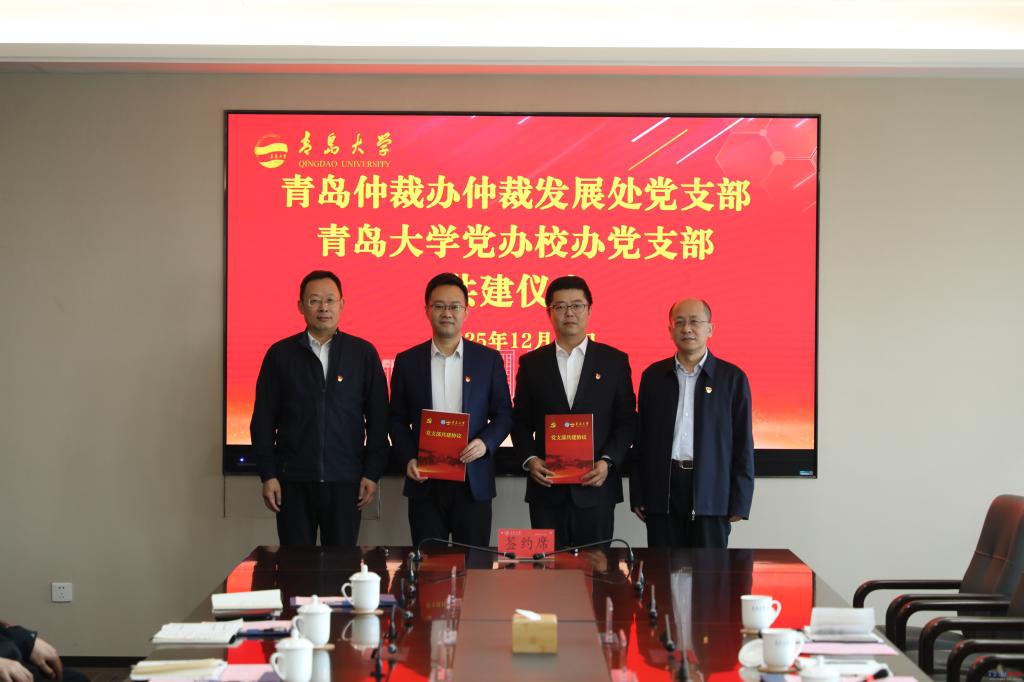 新闻网讯 为深入推进基层党建与业务工作深度融合,积极探索校地党支部共联共建新模式,12月12日上午,伟德官网党办校办党支部与青岛仲裁办仲裁发展处党支部联合开展支部共建活动。青岛仲裁办党组书记、主任王振东,伟德官网党委常委、副校长刘恩贤出席活动。