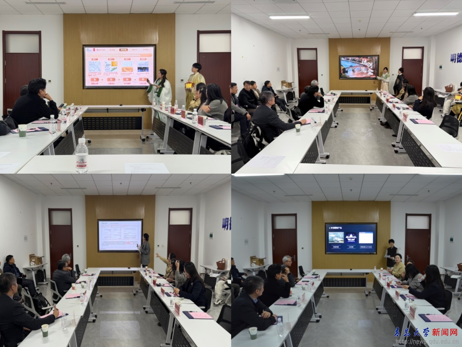 随后,研创大赛国赛一等奖获奖团队艺术学院魏子又团队、蔡子杰团队、姚岐雨团队以及纺织服装学院刘琳团队先后作主题分享,系统介绍了作品研发过程中的技术创新路径、协作模式及参赛经验。通过传统元素与现代技术的创造性结合,获奖作品生动诠释了青年群体在弘扬中华文化、助力美丽中国愿景中的文化自信与创新活力。双方师生还围绕赛事协作、项目孵化、技术商业化等议题展开热烈问答。