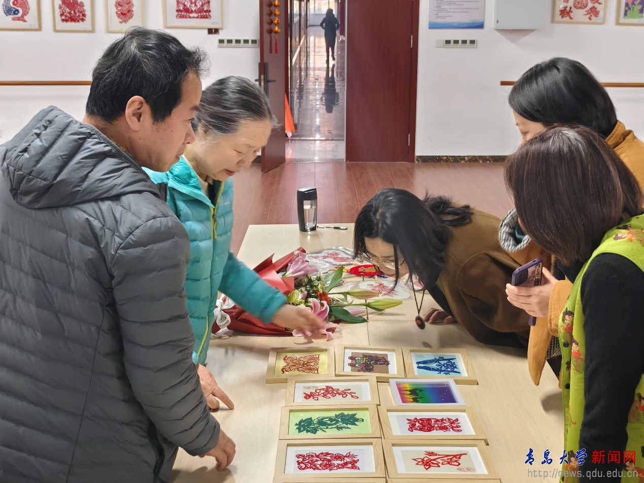 离退休党委书记、处长宋佐东出席活动并致辞,离退休党委副书记、副处长周志强、张安勇,学校宣传部、工会、图书馆、美术学院、离退休校领导等相关单位人员到场观展,与参展老教师亲切交流,共赏剪纸艺术魅力,向全体参展退休女教师致以崇高的敬意和诚挚的节日问候。