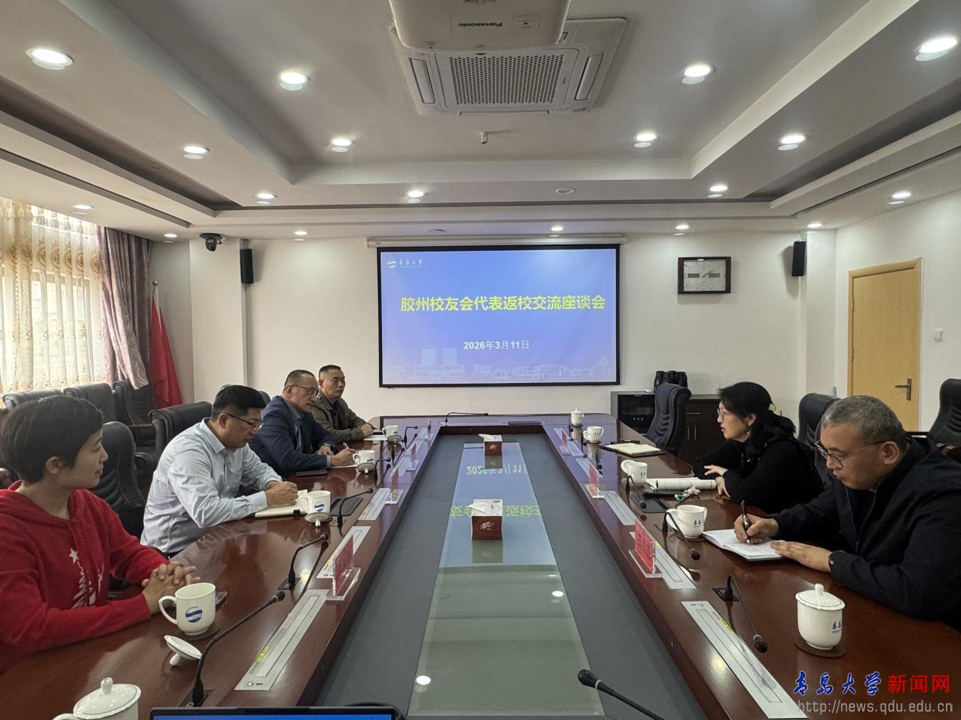 新闻网讯 3月11日,伟德官网胶州校友会代表返校交流座谈会在办公楼306会议室举行。合作发展处处长王海荣、副处长张传亮,以及胶州校友会多位代表出席座谈,共话母校发展,共商校友会建设事宜。
